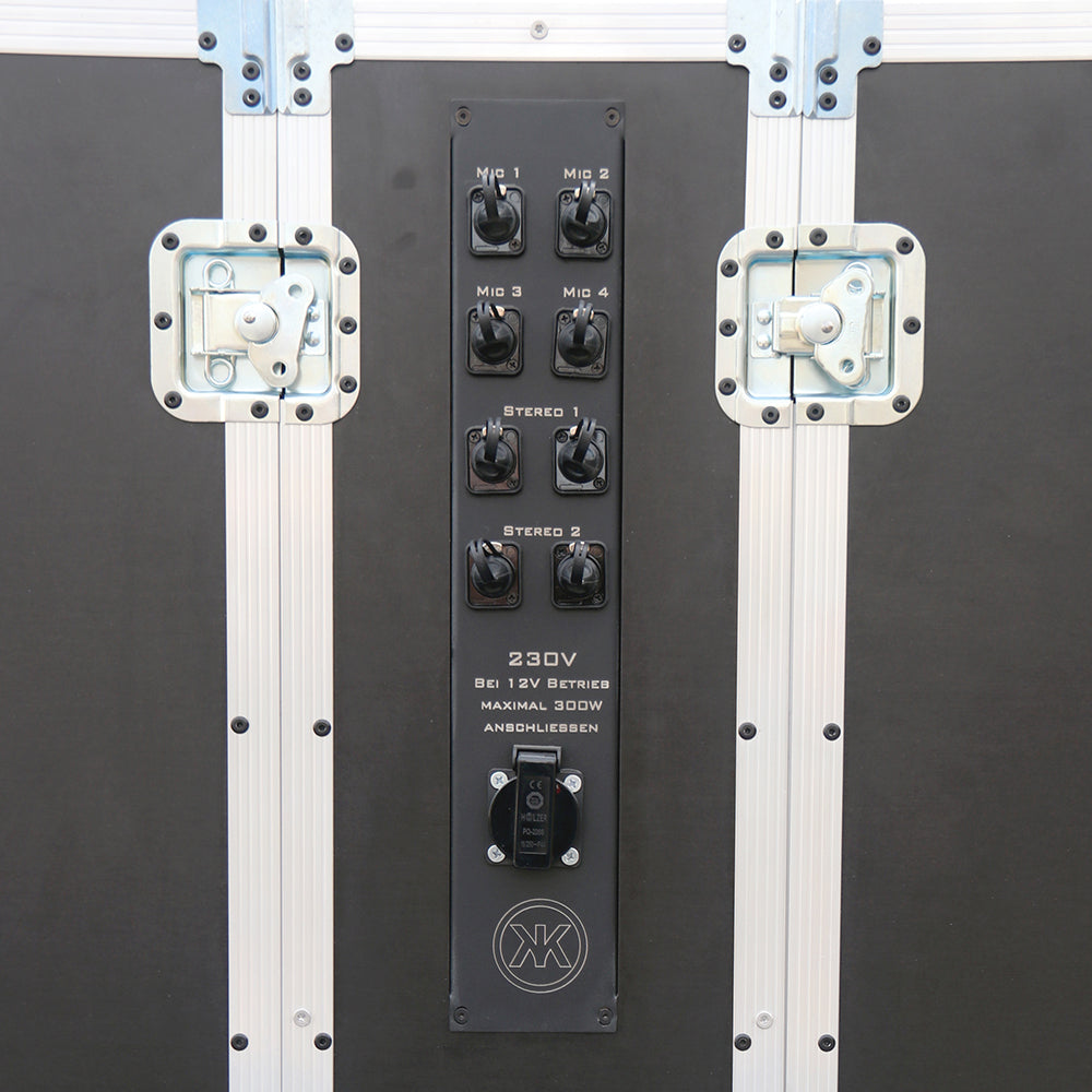 In der Basisversion ist kein Bühnenequipment enthalten. Du kannst jedoch ein fertiges Technikpaket wählen oder die Kiste frei konfigurieren – inklusive PA, Mischpult, Mikrofonen und Scheinwerfern.