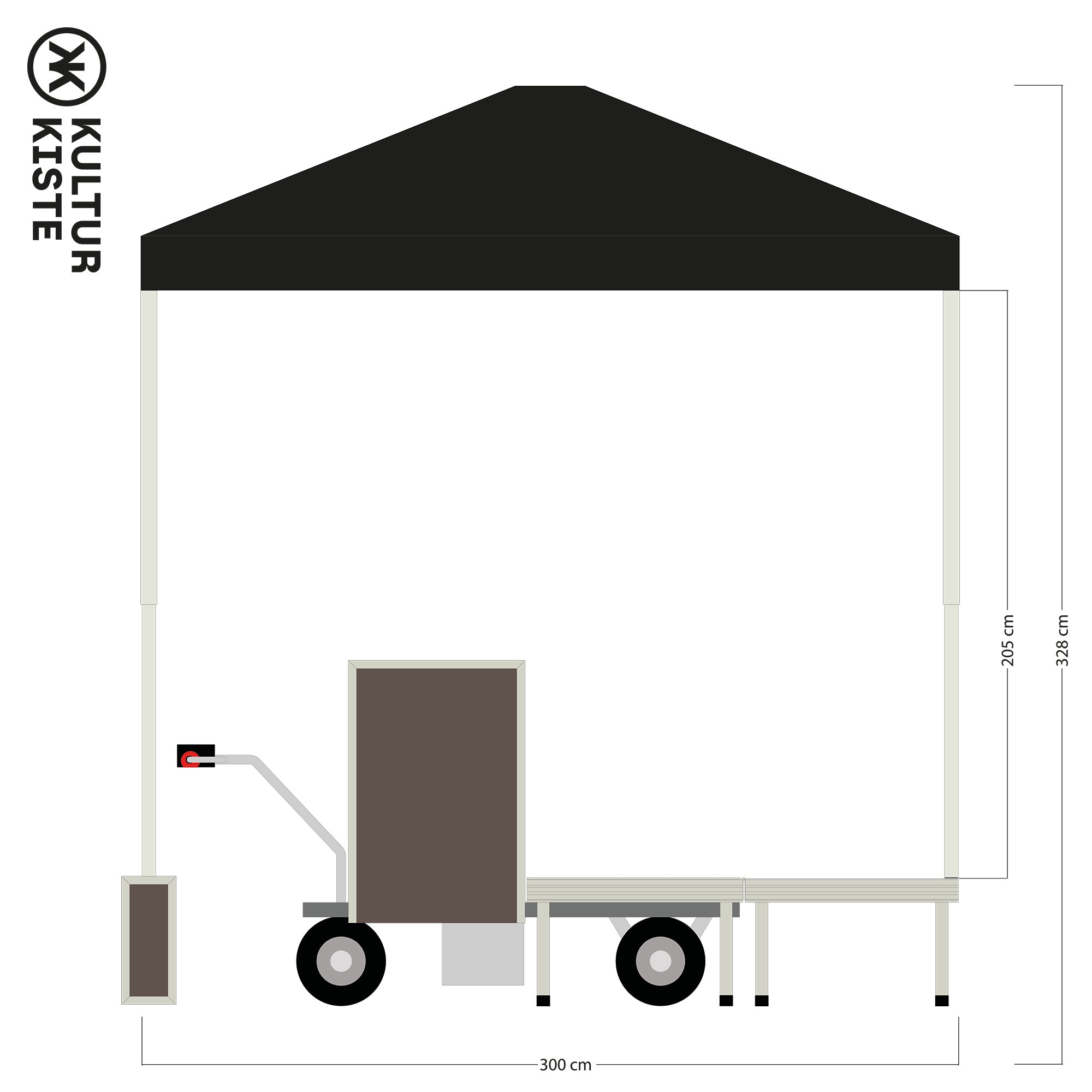Ob Stadtfest, Pop-up-Event, Schulhof, Hotel, Park oder Vereinsfeier: Die Kulturkiste ist für flexible Indoor- und Outdoor-Einsätze konzipiert – mit stabiler Bühne und wetterfesten Optionen wie Pavillon und Raincover.
